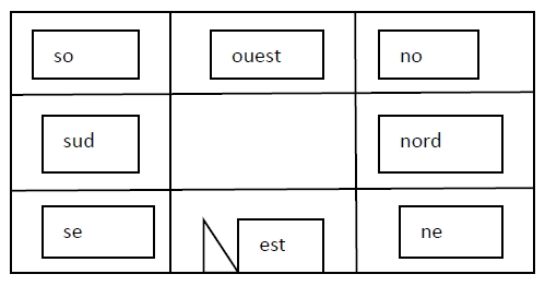 Dans notre exemple, le carré central du bas, côté porte d’entrée est EST car nous avions des directions Est.